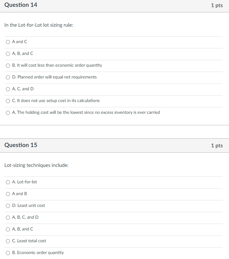 Solved Question 14 1 pts In the LotforLot lot sizing rule